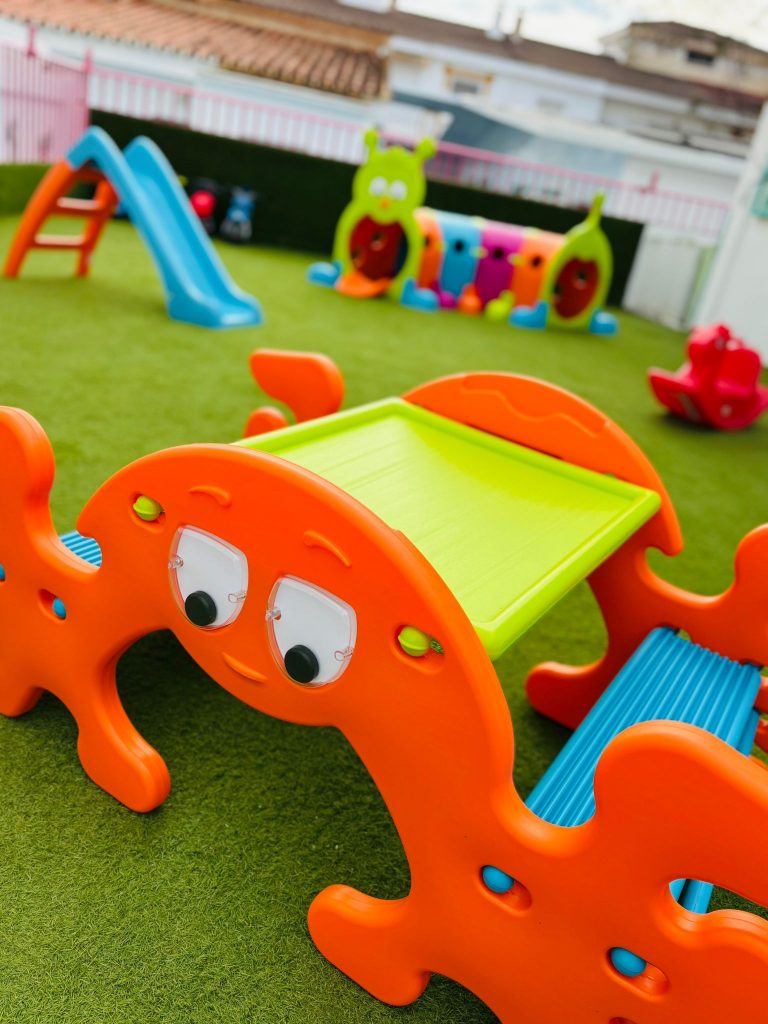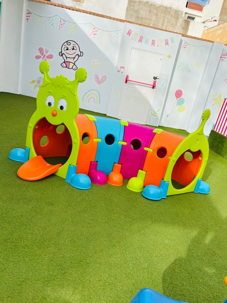 Nuestro centro cuenta con 550 metros cuadrados distribuidos en los siguientes espacios: 5 aulas (una de 0 años, dos de 1 año y dos de 2 años), el comedor, la cocina, los baños, la sala de usos múltiples, la sala de descanso y un gran patio exterior de más de 100 metros cuadrados.